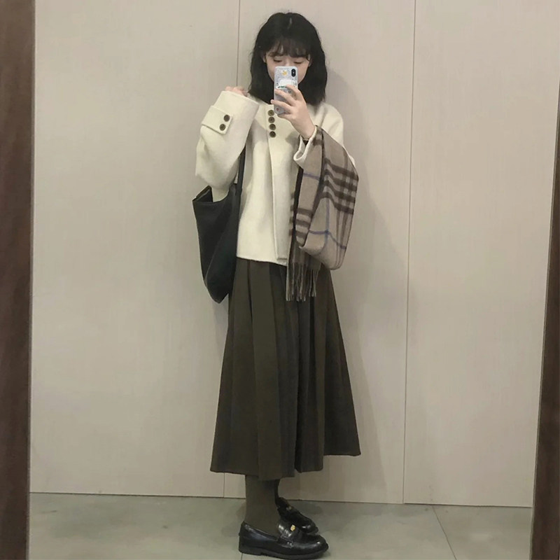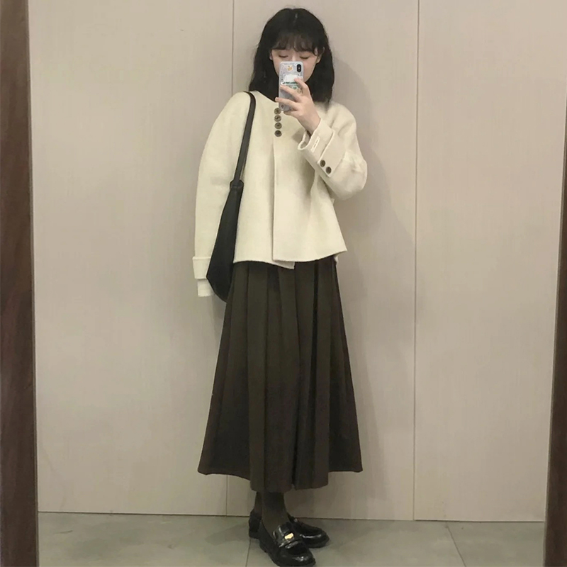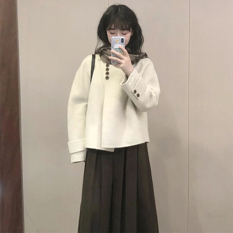 高级设计感米白色短款毛呢外套女春秋新款小个子宽松显瘦韩版上衣