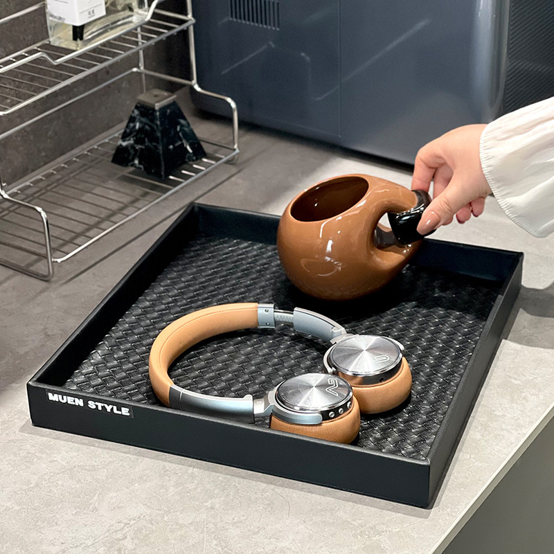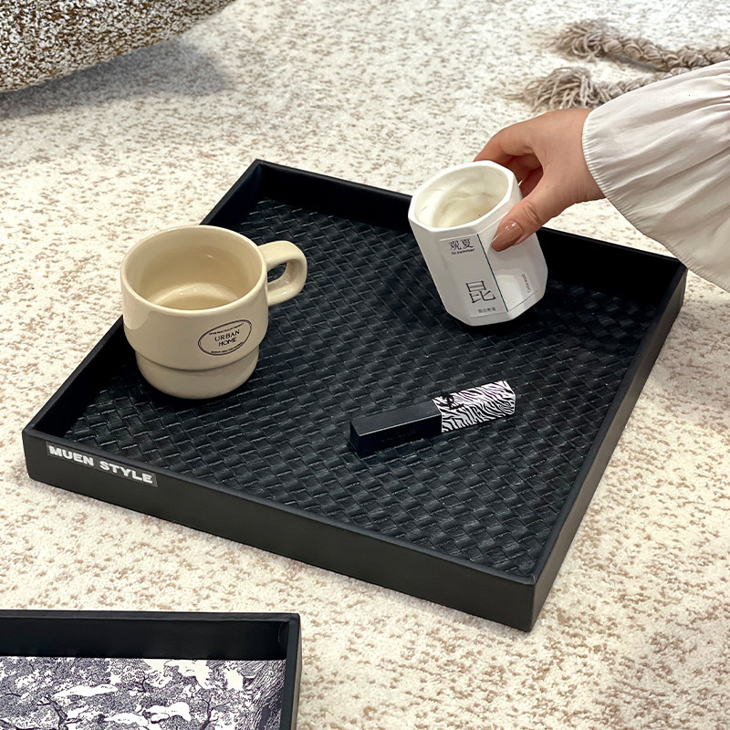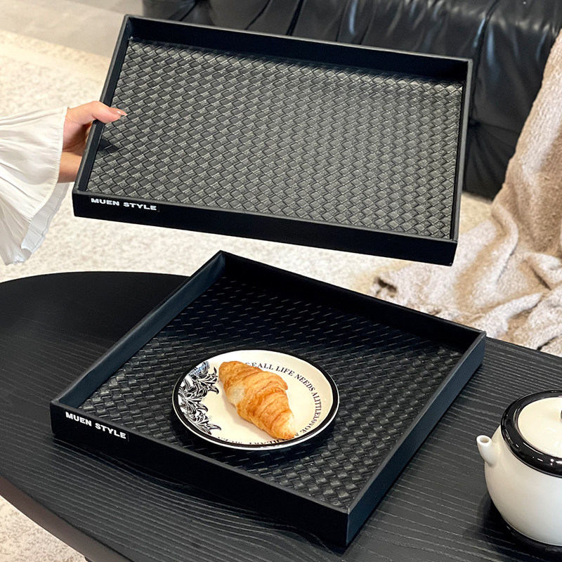 高级感家用水果盘点心盘零食盘蛋糕摆盘高颜值皮革托盘茶水盘子