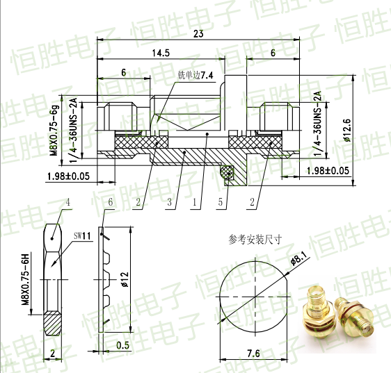 SMA-KKY防水圈转接头 SMA母转SMA母头螺母固定转换头母对母连接器