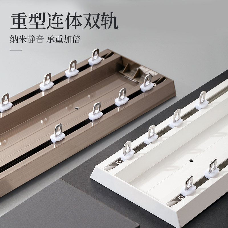 重型连体窗帘轨道顶n装 静音V型铝合金导轨单双滑轨窗帘杆隐形滑