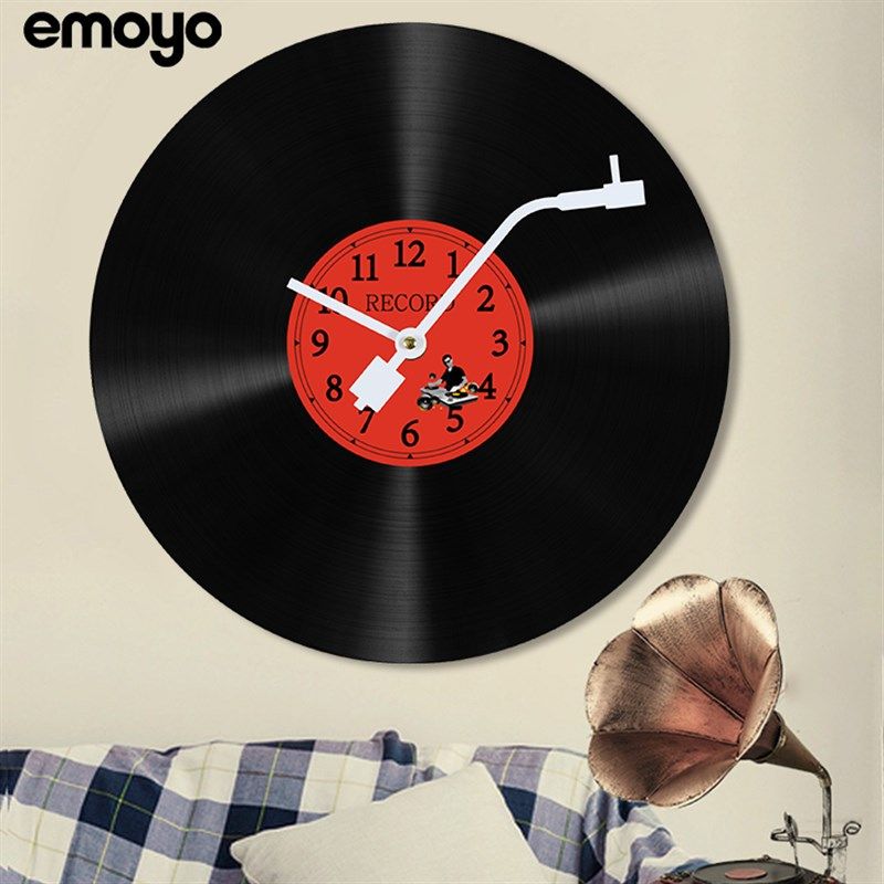 留声机黑胶唱片diy涂鸦复古挂钟 创意酒吧咖啡馆音乐装饰钟表墙钟