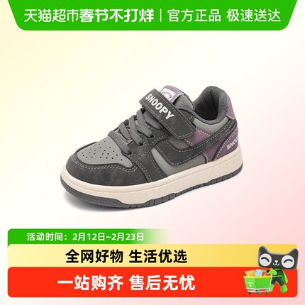 史努比男童板鞋低帮皮面防水春季2026新款大童女孩运动鞋儿童潮鞋