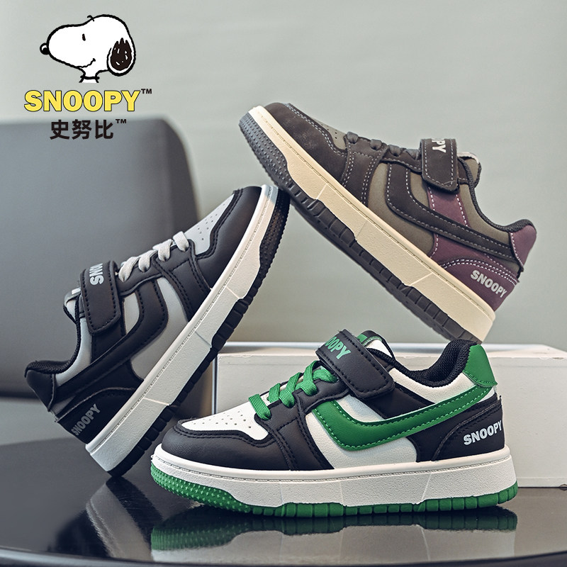 史努比低帮皮面防水春季新款男童