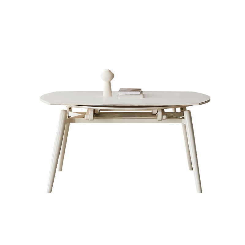 可伸缩折叠圆桌子现代简约家用小户型实木奶油风格岩板餐桌椅组合