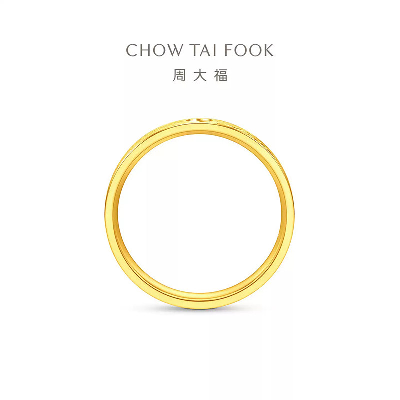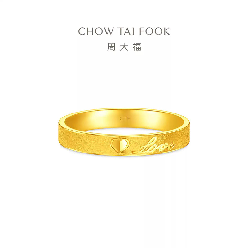 新款周大福爱心LOVE情侣闭口戒足金黄金戒指女款计价EOF1763礼物