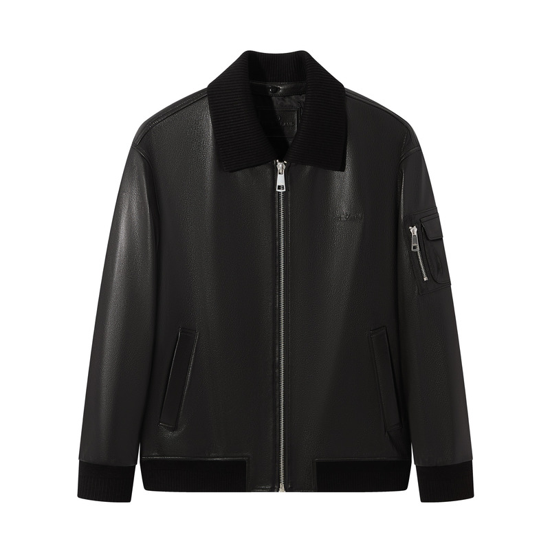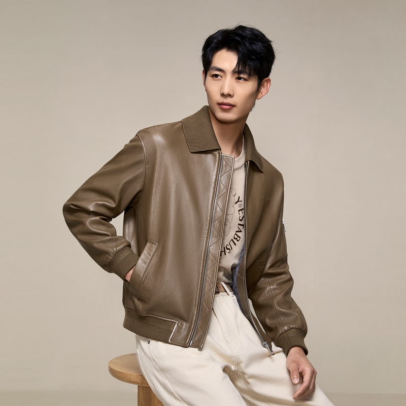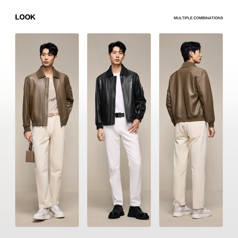 【高端系列/山羊皮】柒牌皮衣男2025新款可拆卸针织领皮夹克外套
