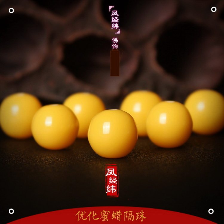 包邮仿蜜蜡色鸡油黄合成圆珠隔珠散珠星月菩提手串佛珠DIY配饰件