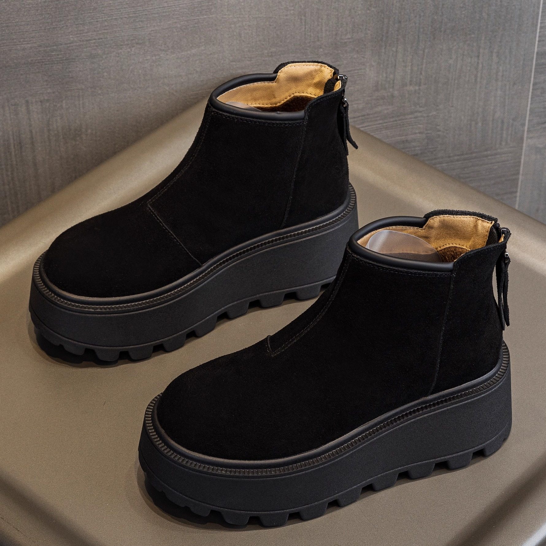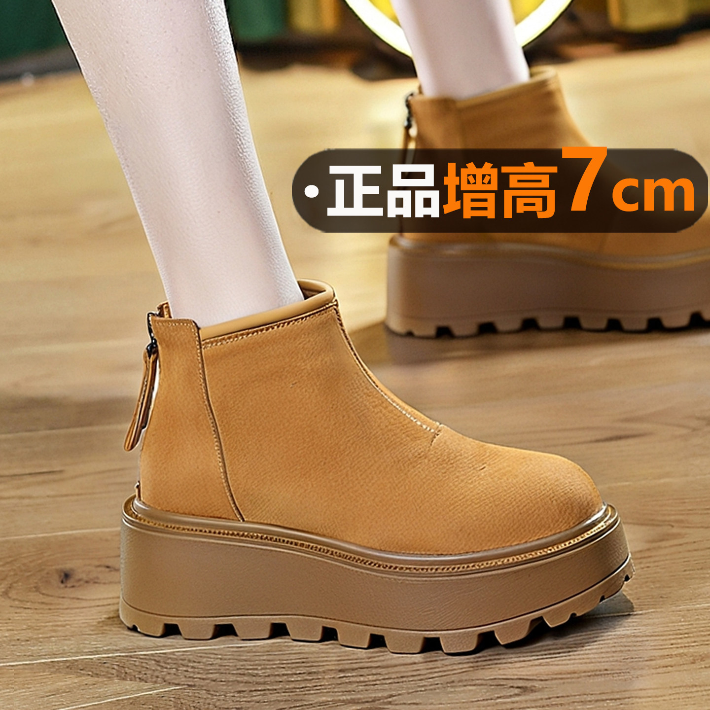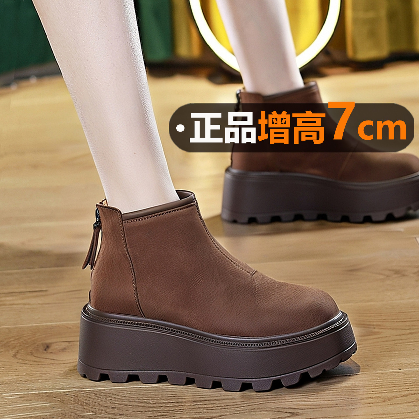 7cm厚底内增高短靴女2025新款冬季加绒磨砂马丁靴女士小短靴防滑