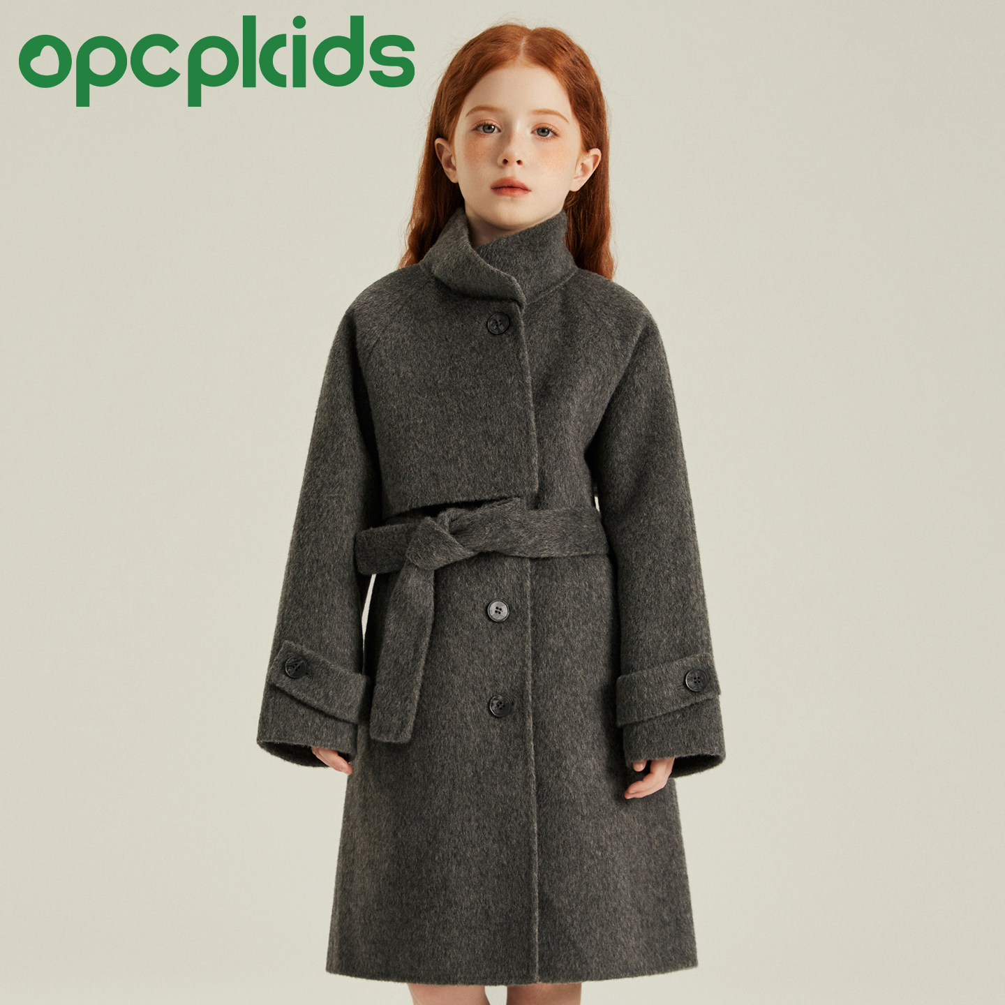 OPCP儿童双面羊绒大衣秋冬新款女童腰带呢子外套全羊毛男童中长款