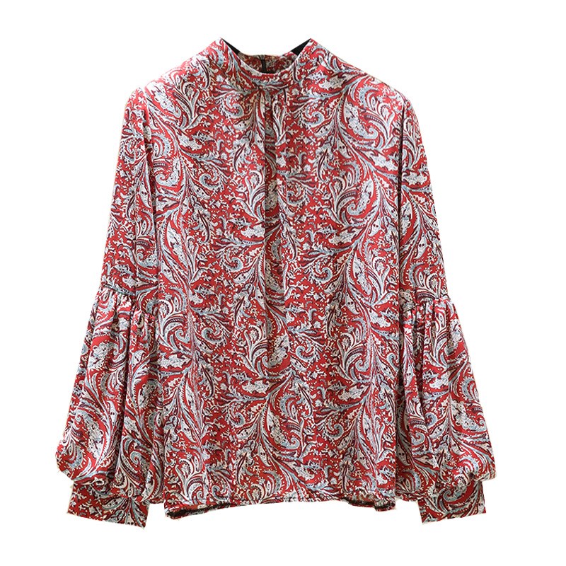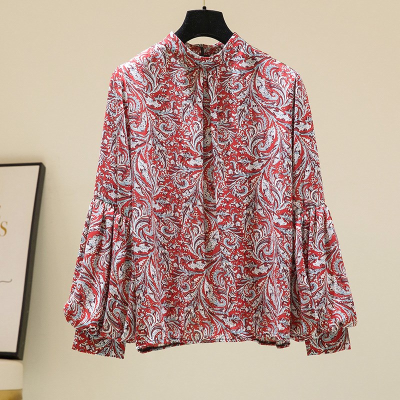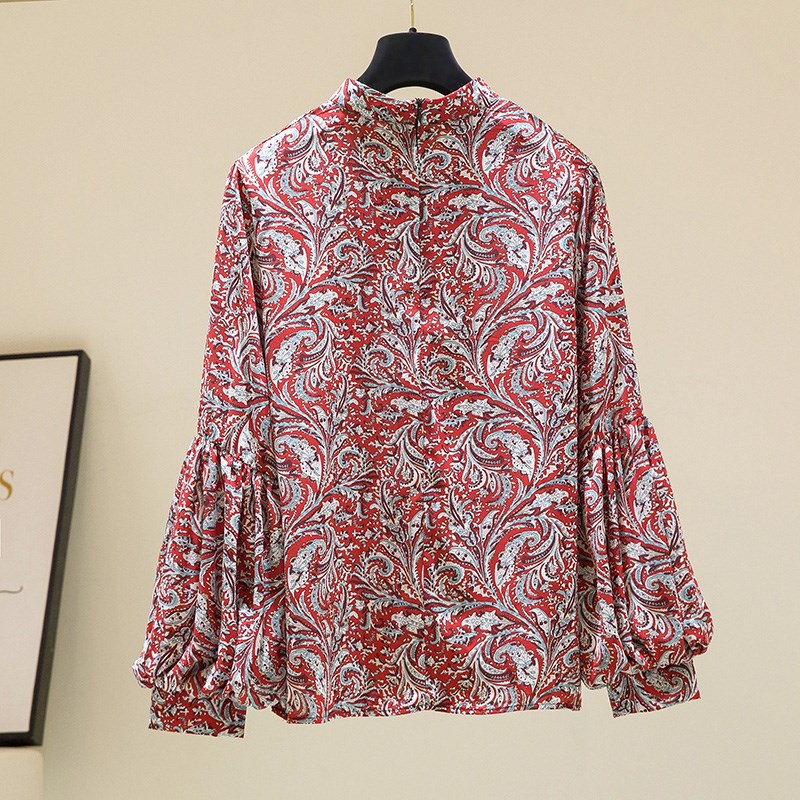碎花雪纺衫女春秋薄款2024年新款立领衬衫设计感小众宽松长袖上衣