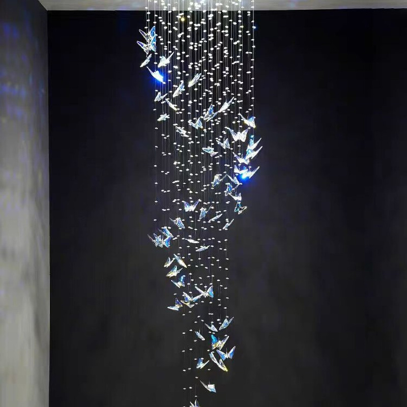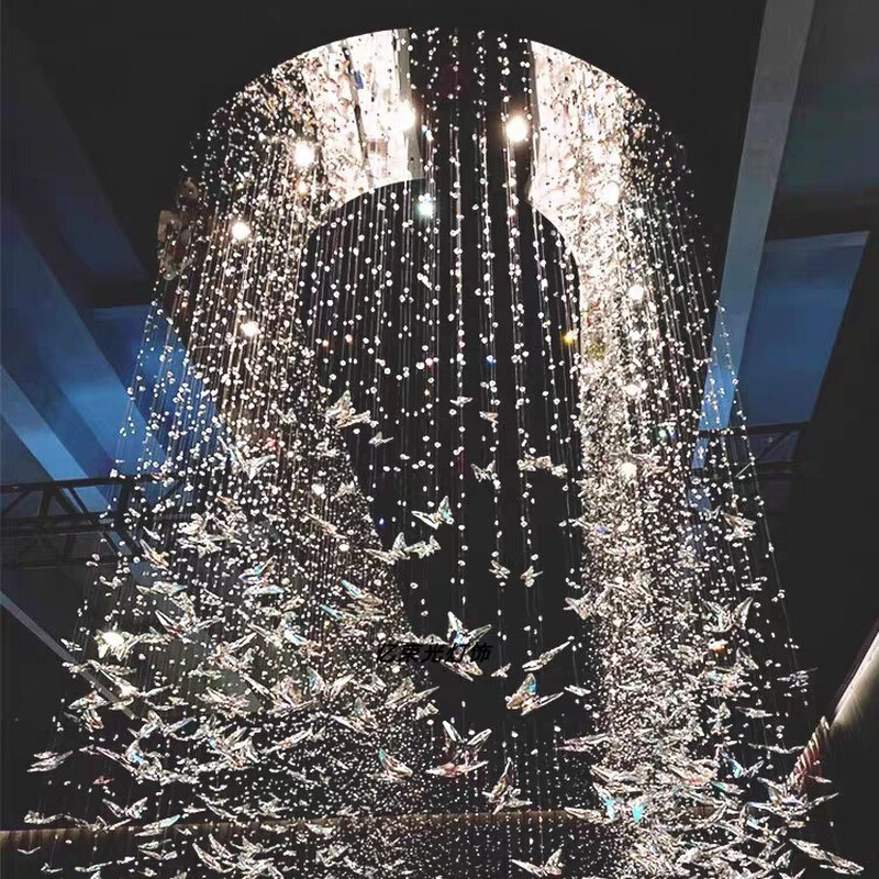 宴会厅现代水晶蝴蝶吊灯楼梯灯别墅酒店售楼部轻奢灯具