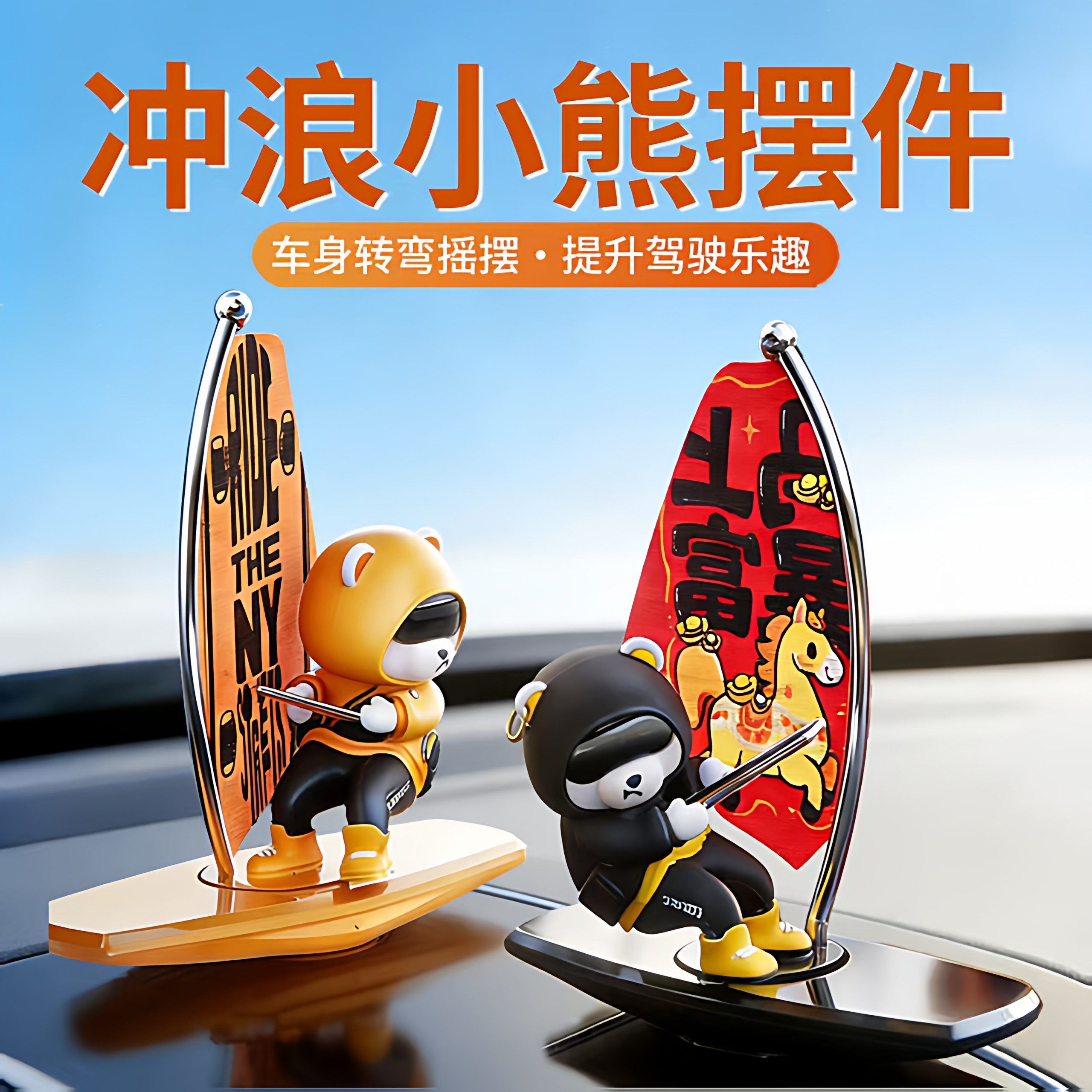 汽车创意可爱车内滑动滑板熊摆件车载卡通中控台屏幕仪表台装饰品