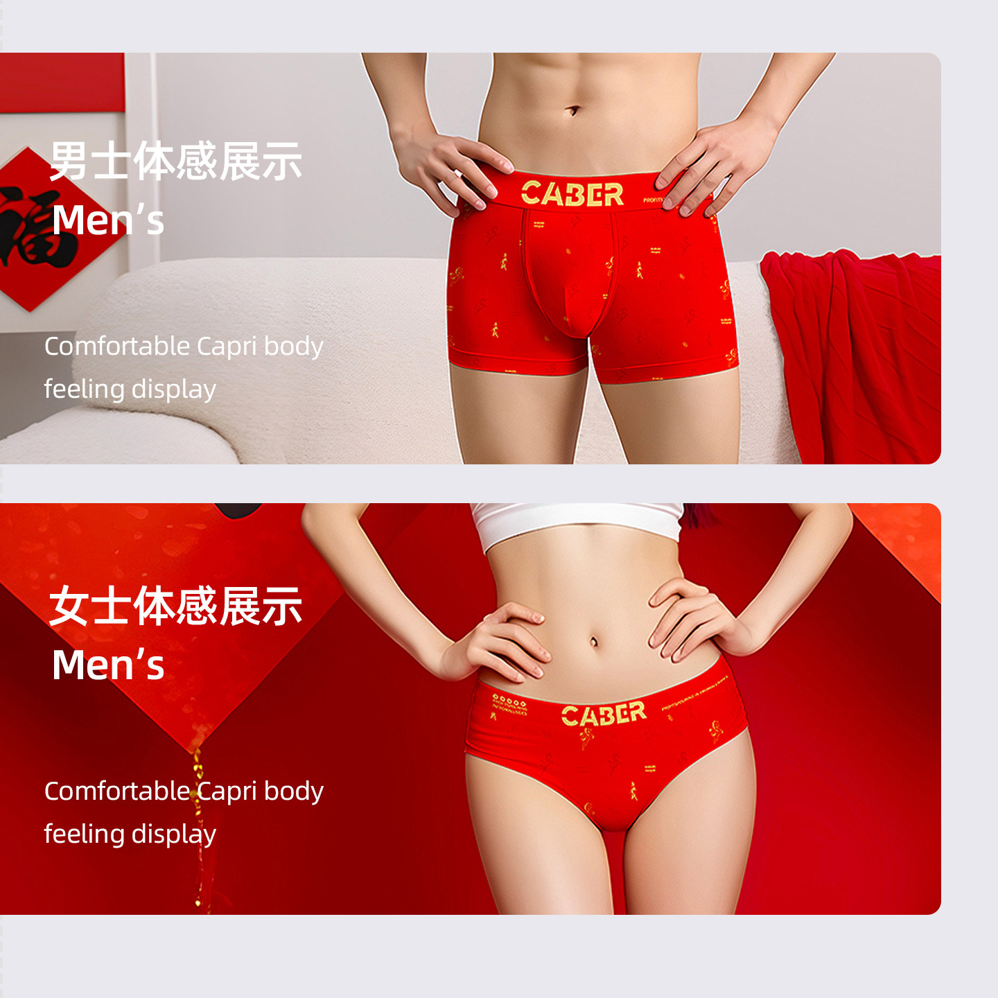 caber/卡百利秋冬新款马年本命年好运红裤礼盒装莫代尔情侣内裤