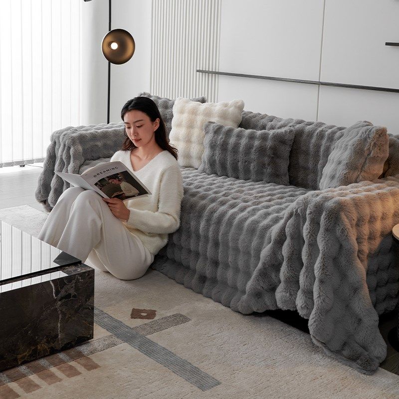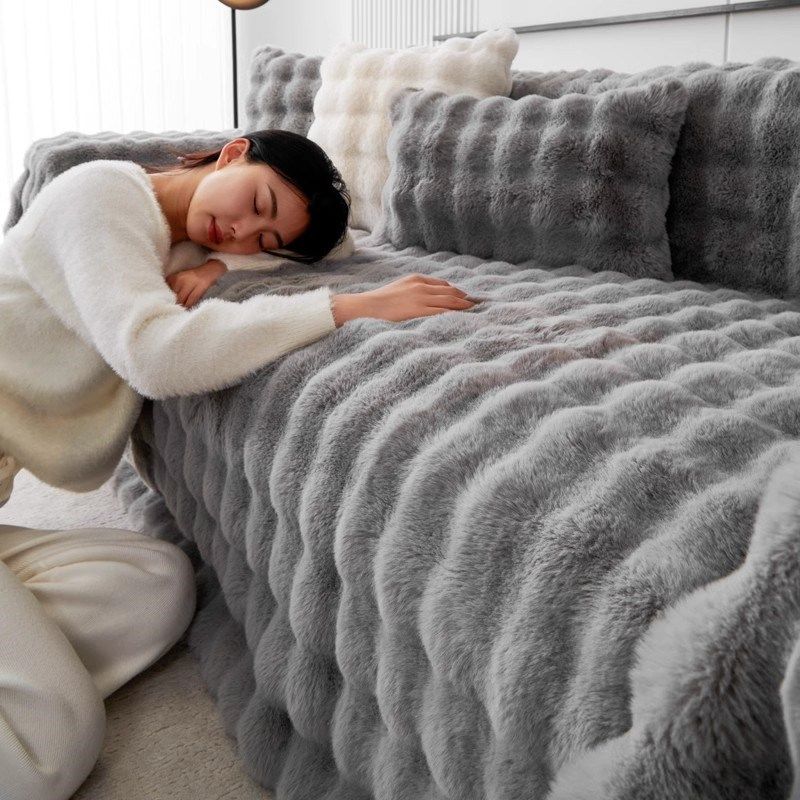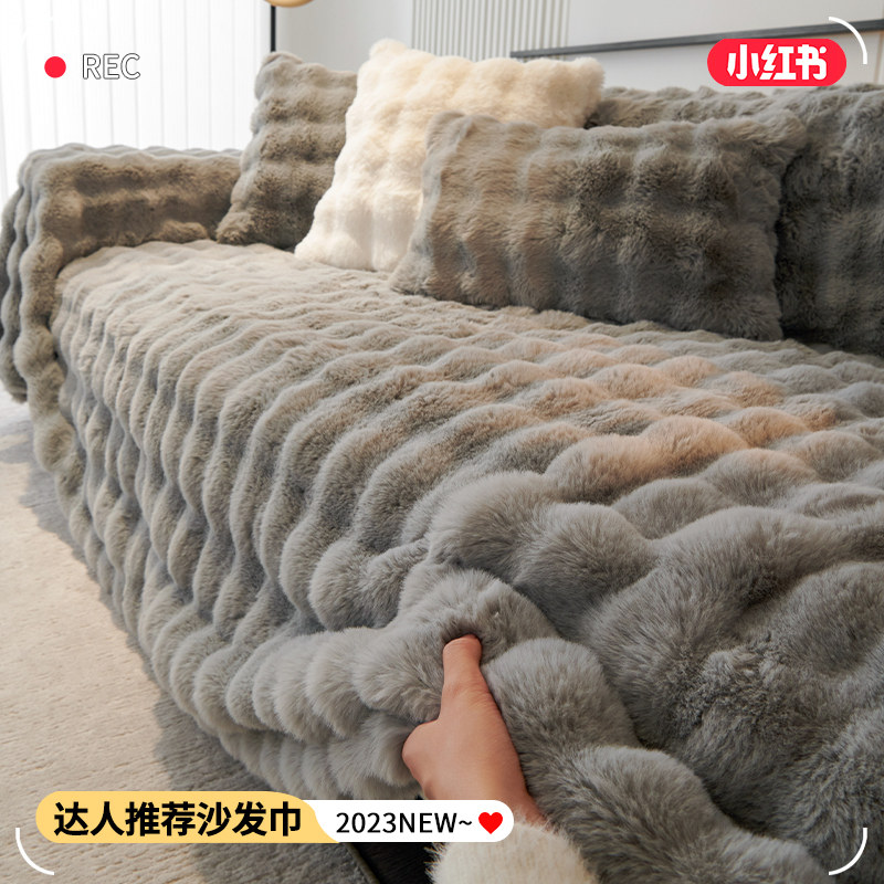 冬款冬季兔毛绒沙发垫冬季加厚坐垫防滑沙发罩202款沙发盖布巾