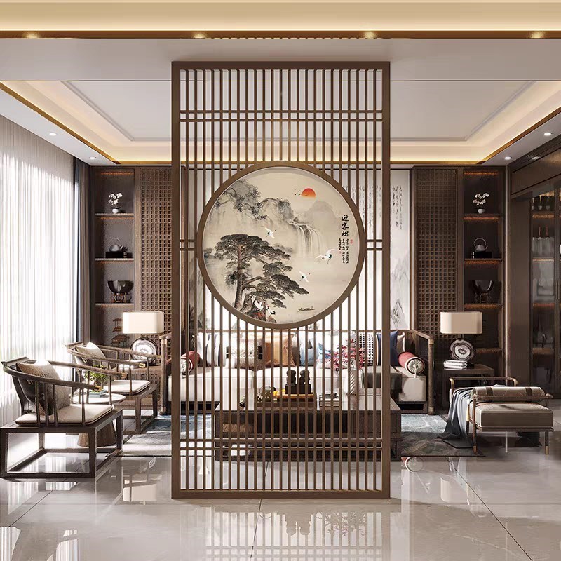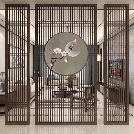 铁艺屏风隔断墙客厅现代简约餐厅新中式定制入户玄关镂空格栅遮挡