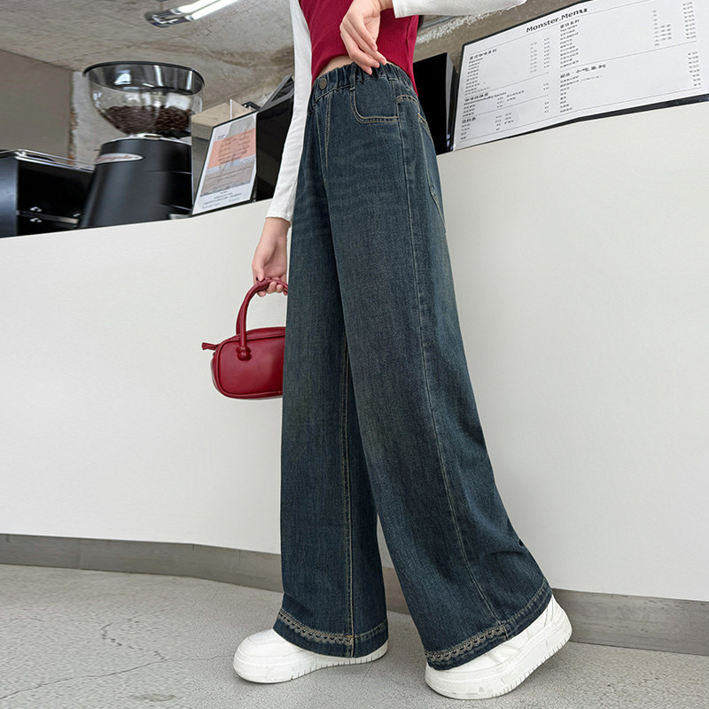女童加绒牛仔裤秋冬新款大童直筒长裤秋季阔腿裤冬季儿童好看裤子