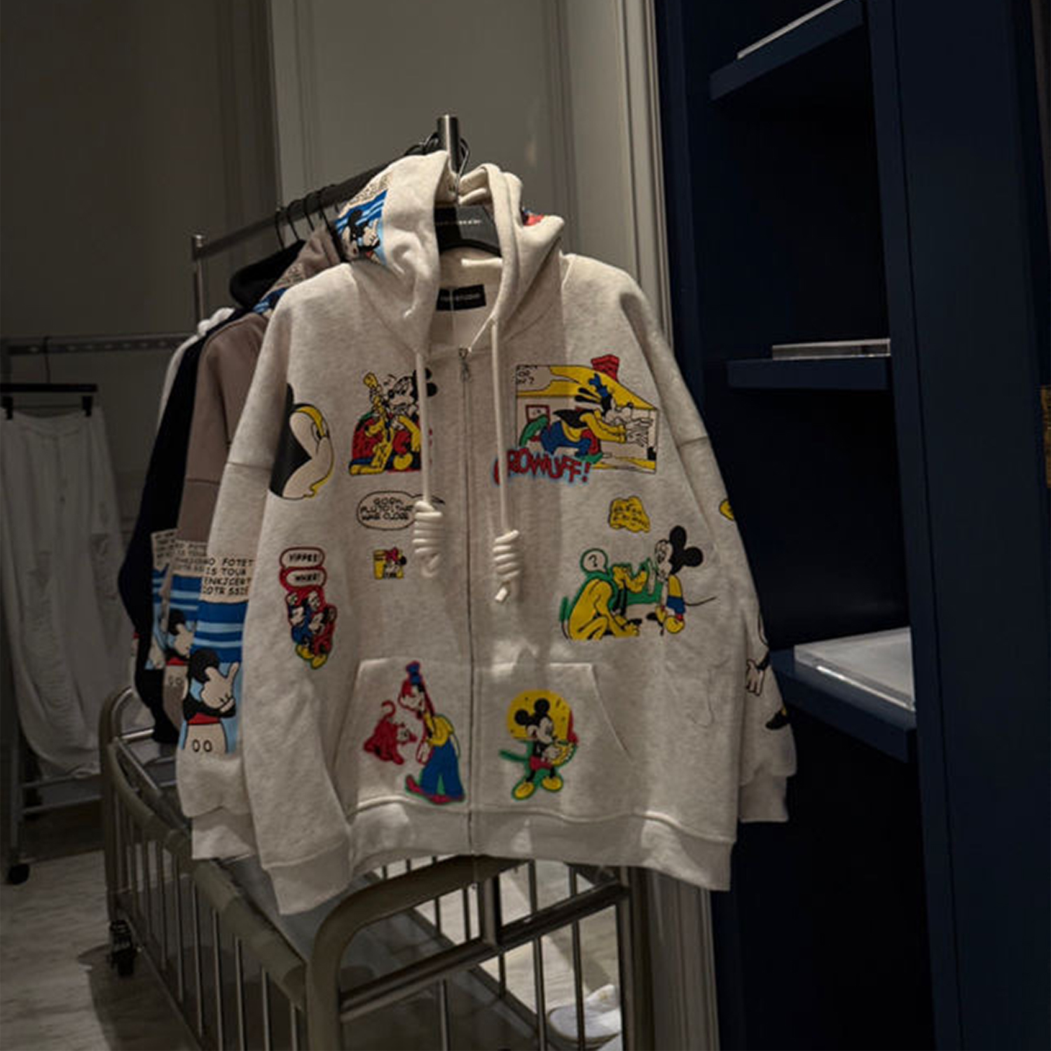 连帽拉链开衫卫衣外套女2025新款春秋款宽松慵懒chic港味复古上衣