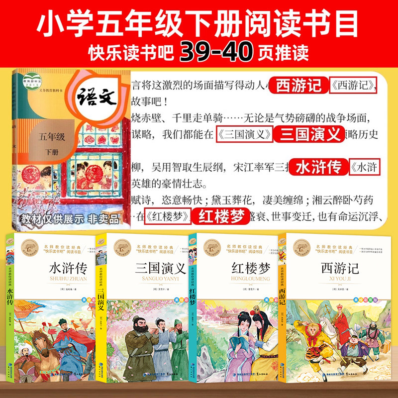 四大名著正版原著五年级下册必读课外书西游记三国演义小学生版青少年版本人教版彩图美绘版快乐读书吧五年级下册课外书必读