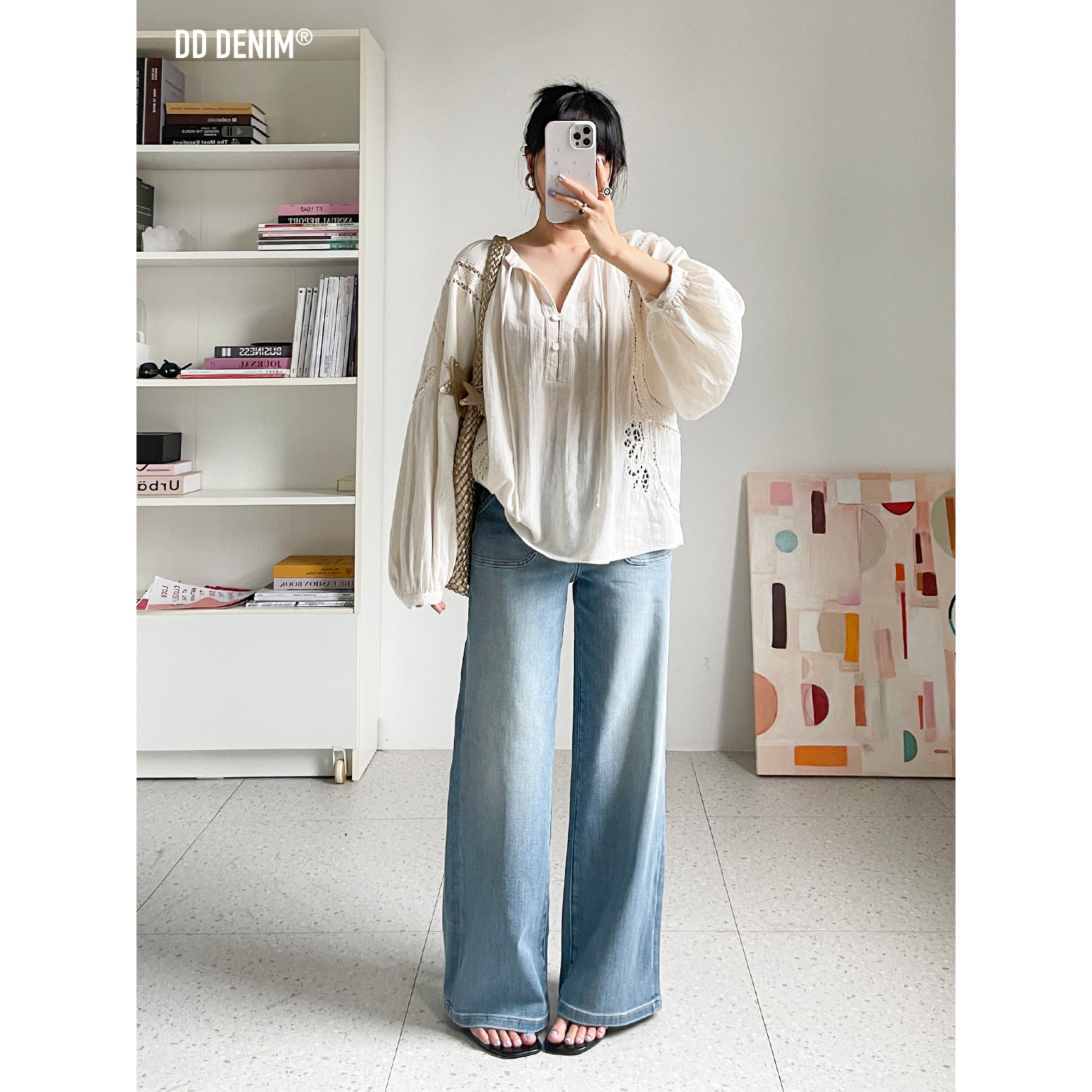 DD「BohoChic」波嬉风复古小众设计直筒牛仔裤女弹力窄版阔腿裤