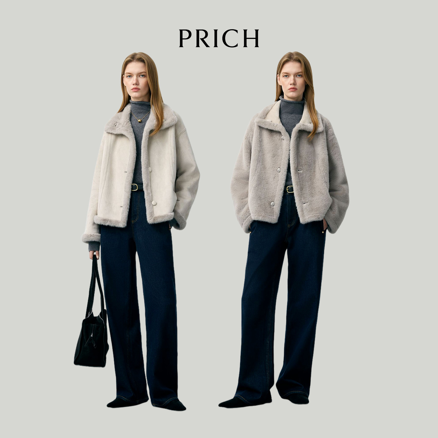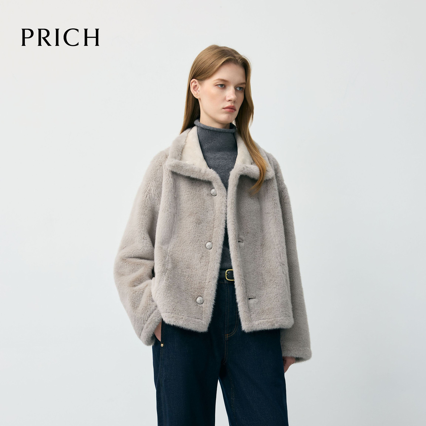 PRICH时尚复古双面穿软糯毛绒感外套2025冬季新款短款皮草上衣女