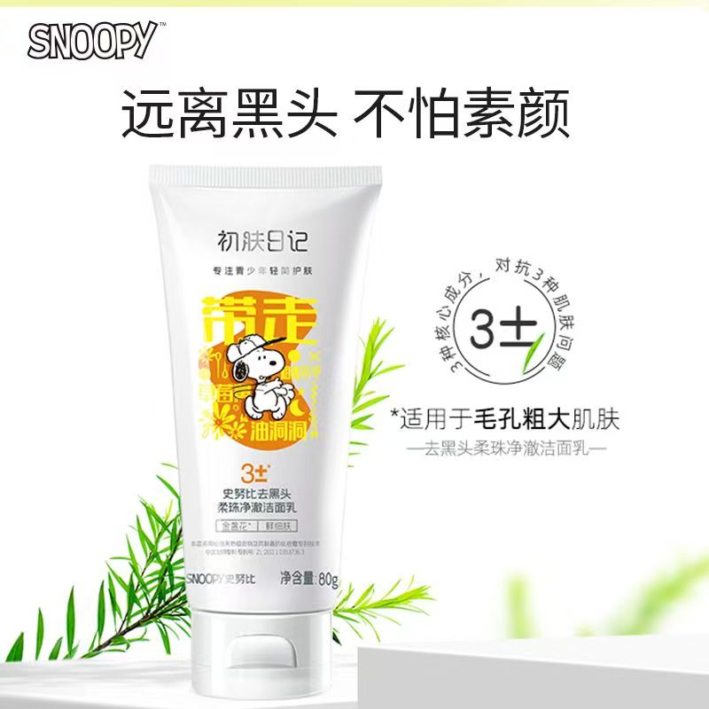 史努比去黑头洁面乳80g 洁面膏控油儿童青少年学生护肤品清洁泡沫