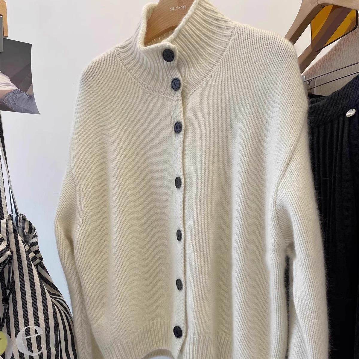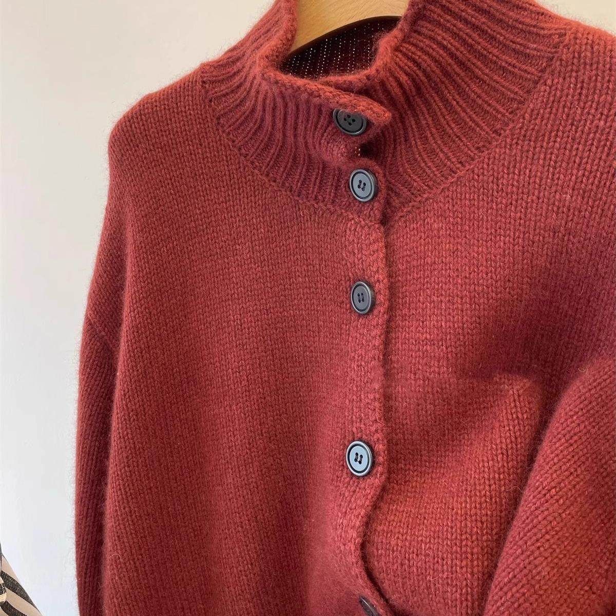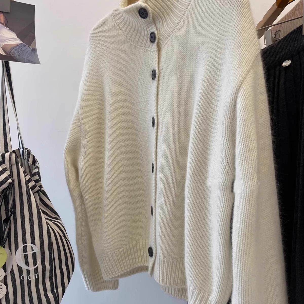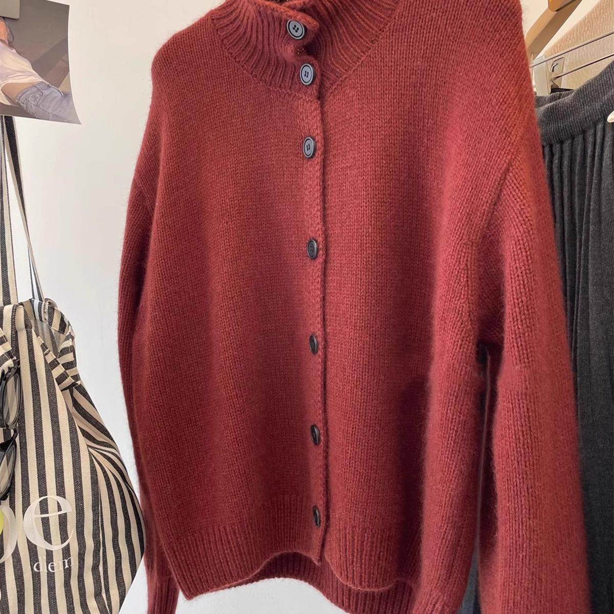 法式复古灰色浣熊绒高领毛衣外套女秋冬宽松慵懒立领针织开衫上衣