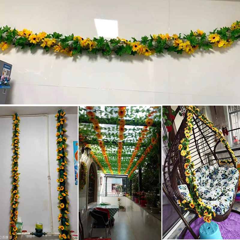 仿真太阳花藤条向日葵花藤假花藤蔓室内壁挂空调管道遮挡装饰
