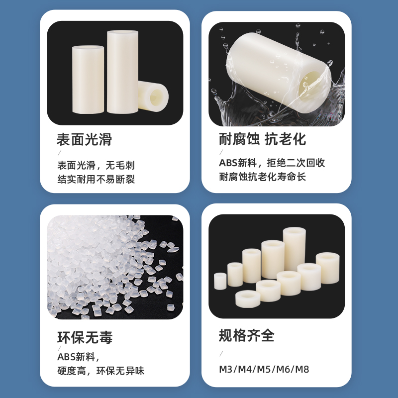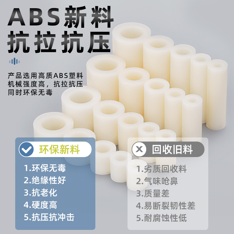 绝缘柱塑料垫片ABS隔离柱垫高垫圈直通柱尼龙套管空心支撑柱M5M6
