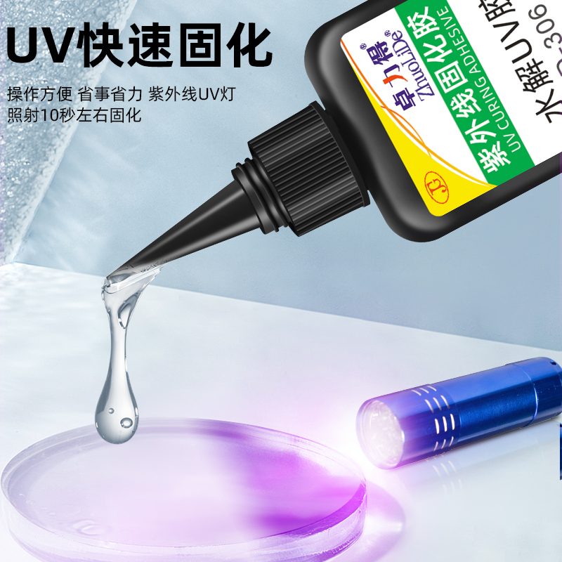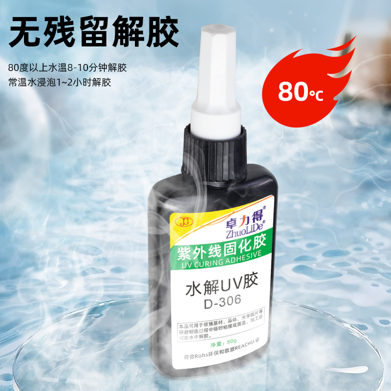 水解UV胶CNC加工打磨宝石水晶玻璃临时粘接无影胶抛光固定临时保护镜片研磨透明温水溶解无残留水解胶D-306
