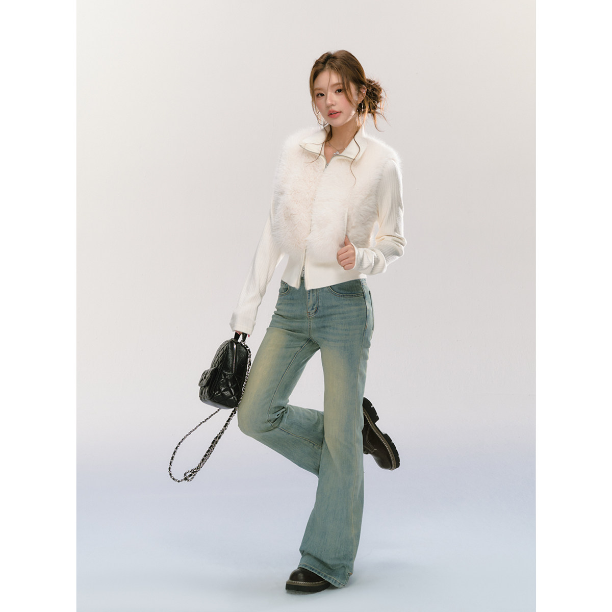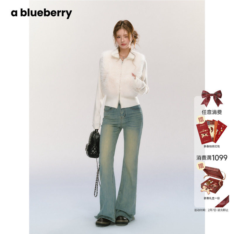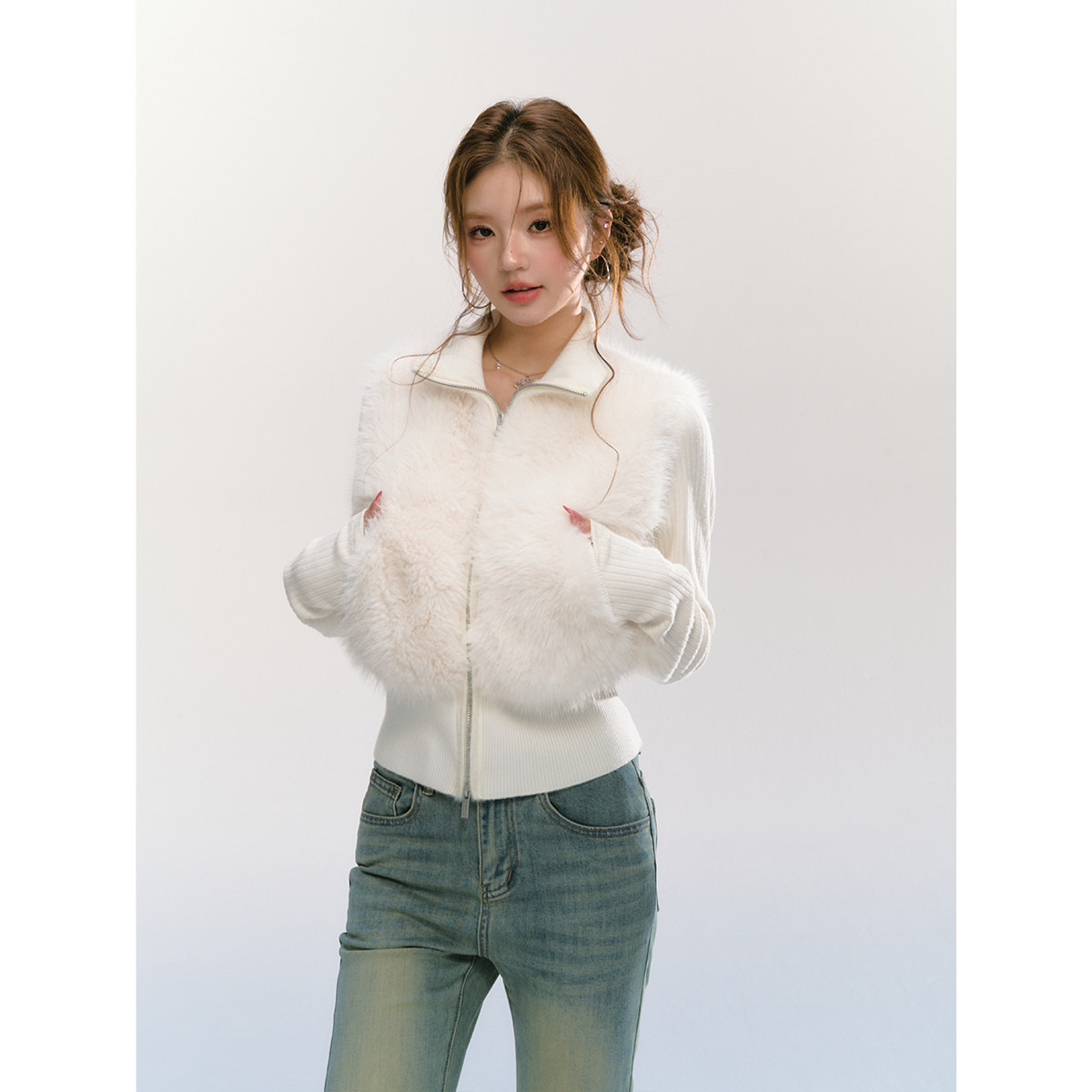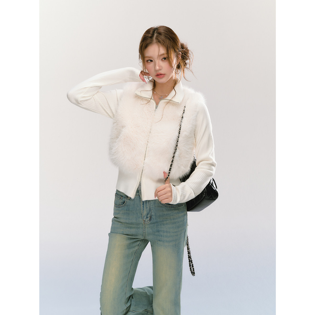 ablueberry 韩版辣妹时尚毛毛外套女白色毛衫修身拼接针织衫毛衣