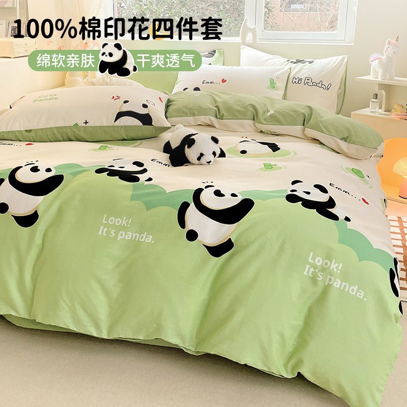 全棉儿童四件套卡通可爱小清新纯棉学生宿舍三件套床笠床单被套