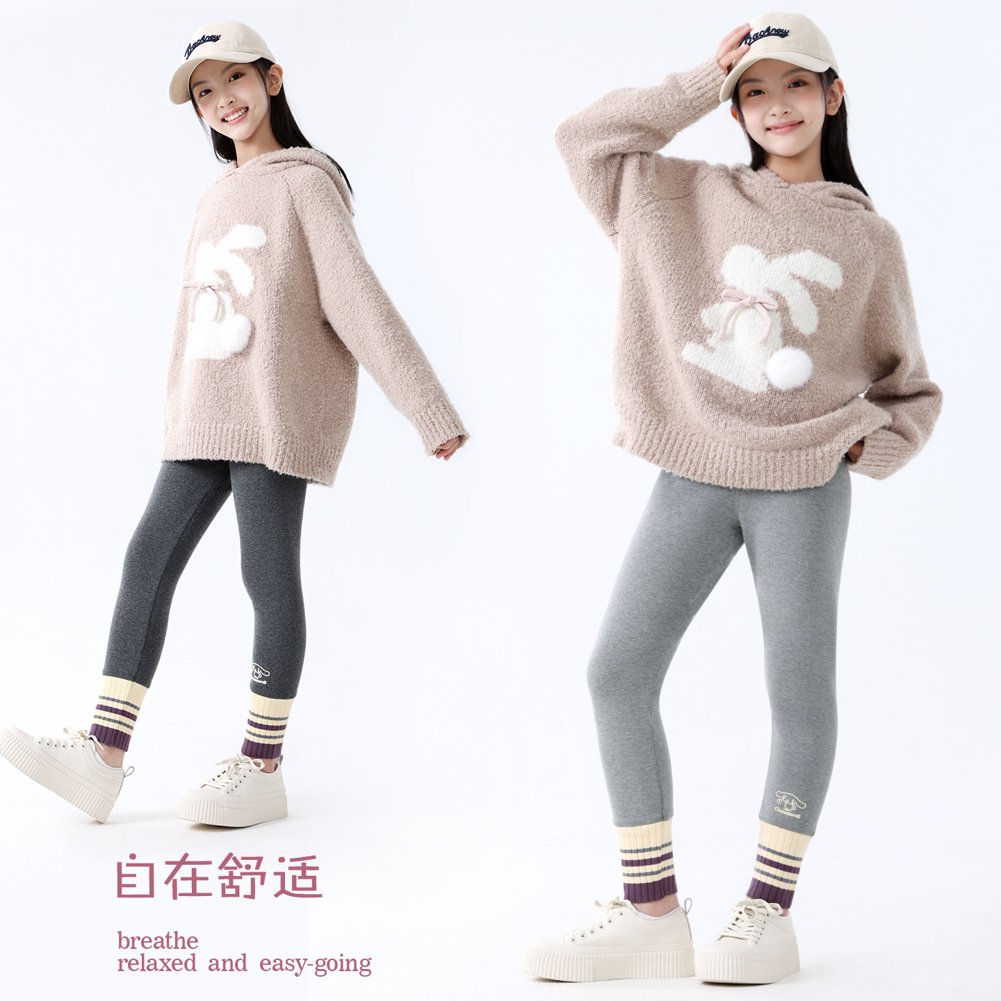 玉桂狗女童加绒打底裤儿童裤子秋冬款中大童加厚长裤女孩外穿童装