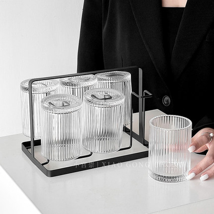 简约玻璃杯水具套装高级感客厅待客家用喝水杯子咖啡杯茶杯果汁杯