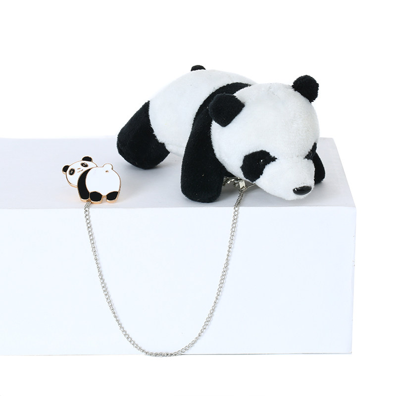 熊猫趴趴玩偶胸针恐龙毛绒情侣可爱太阳花别针链条徽章衣服配饰