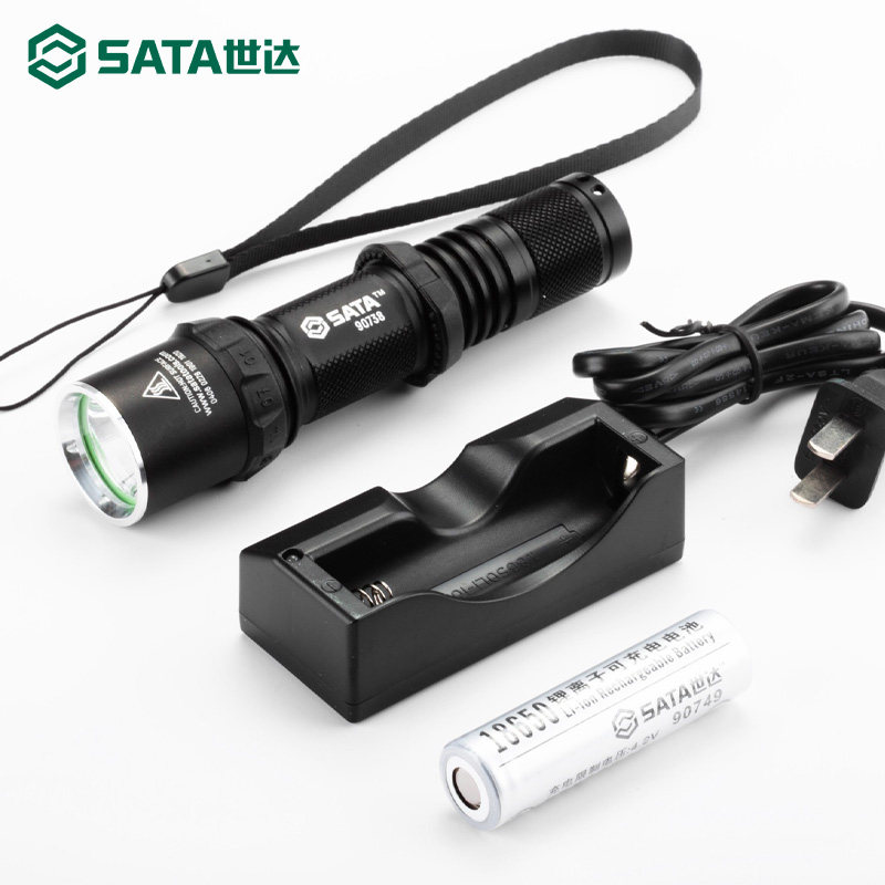 世达手电筒强光充电式超亮家用户外便携式LED超长续航远射照明灯