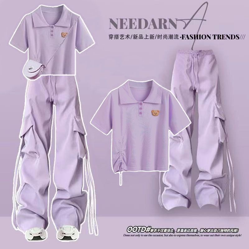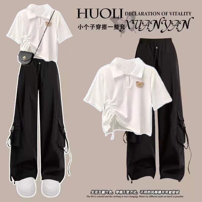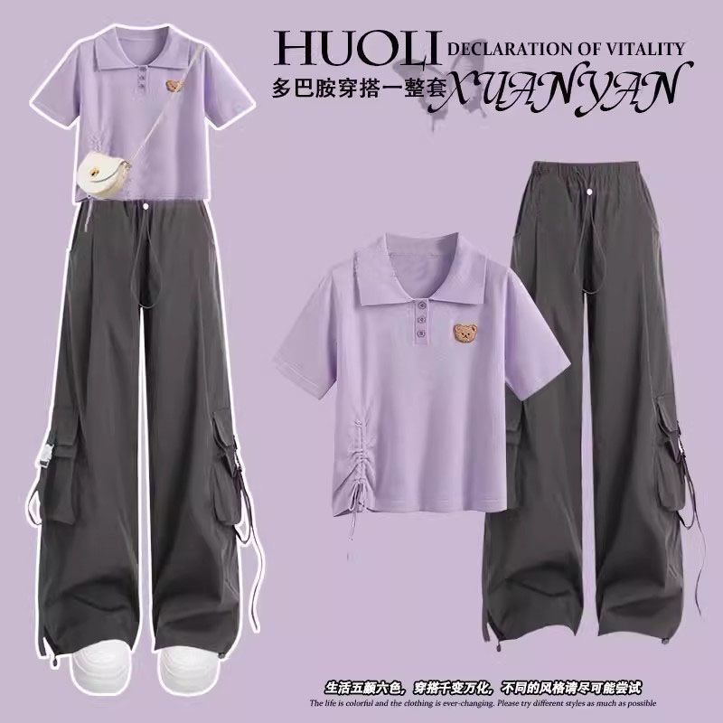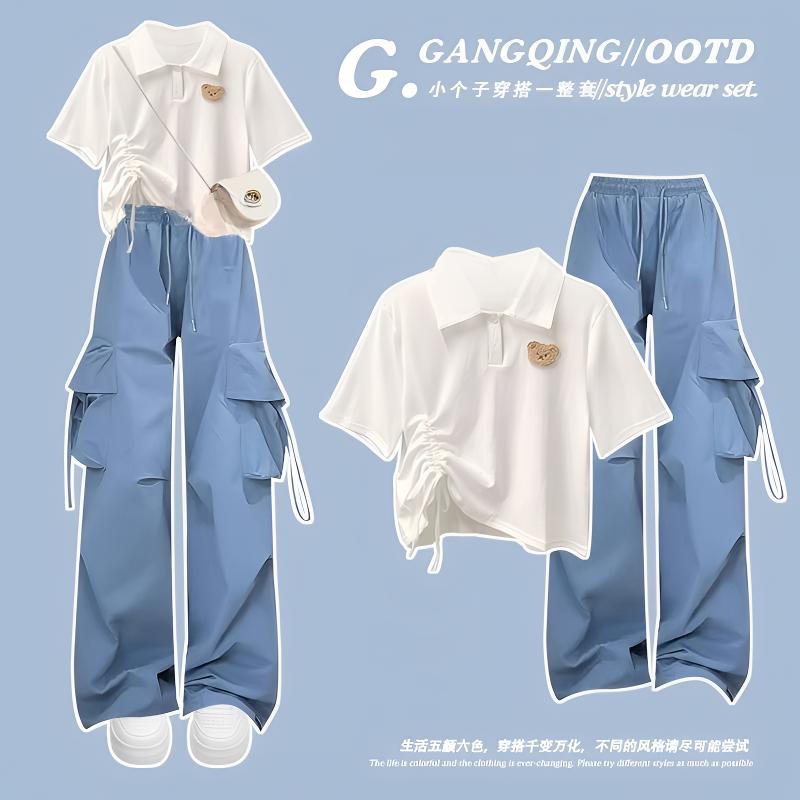 女童夏季工装裤套装2024新款潮酷正肩短袖中大童多巴胺运动两件套