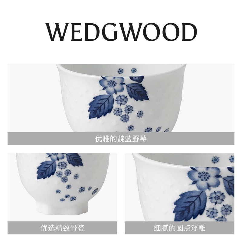 WEDGWOOD威基伍德靛蓝草莓中式茶碗骨瓷小茶碗日式下午茶茶碗