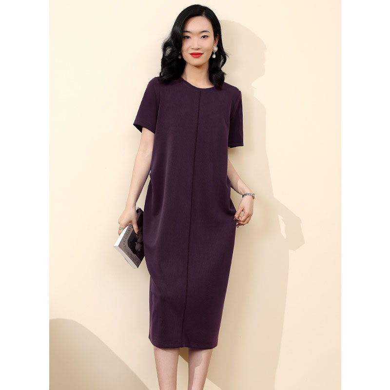 高级感纯色短袖连衣裙2025夏季新款女休闲气质T恤裙大码宽松裙子