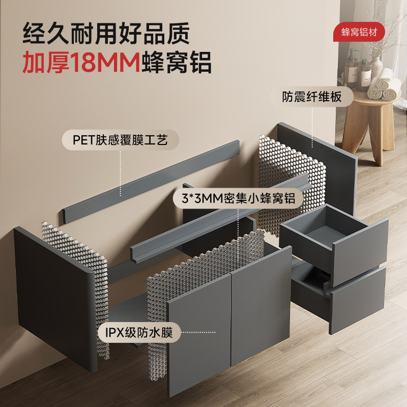 加厚蜂窝铝浴室柜组合陶瓷一体盆洗手盆卫生间洗脸盆抽屉柜洗漱台