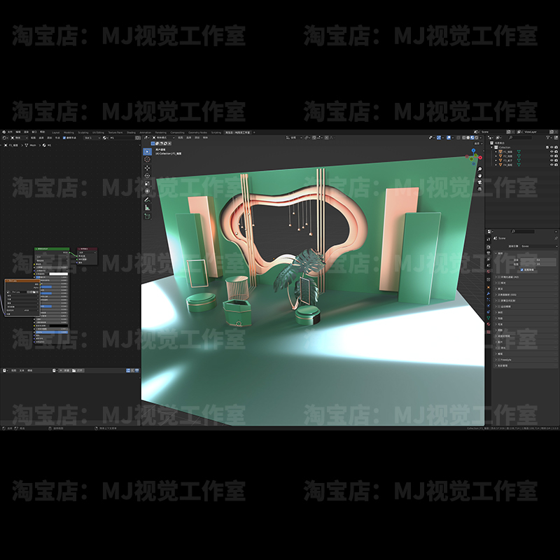 绿色舞台展台blender烘焙场景背景模型建模素材文件下载333