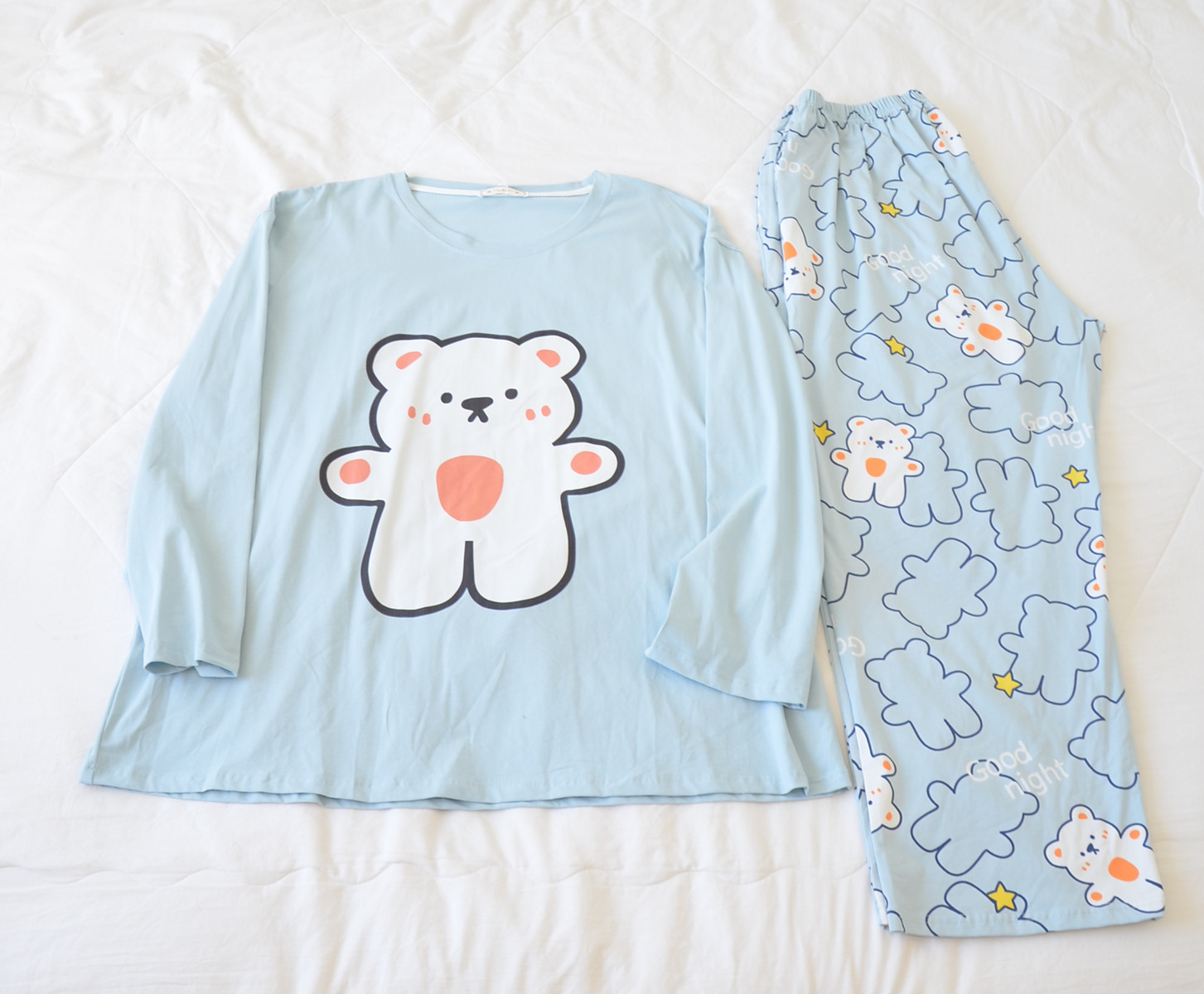 200斤加大码小熊情侣睡衣女男士长袖长裤秋季胖MM纯棉宽松家居服