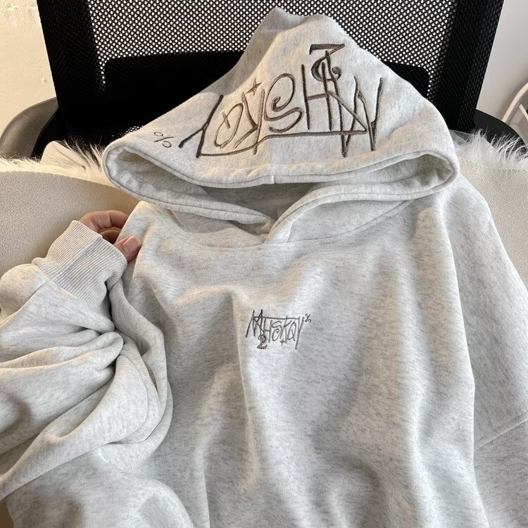 美式潮流白灰色连帽卫衣男女秋冬新款潮牌hiphop高街刺绣上衣外套
