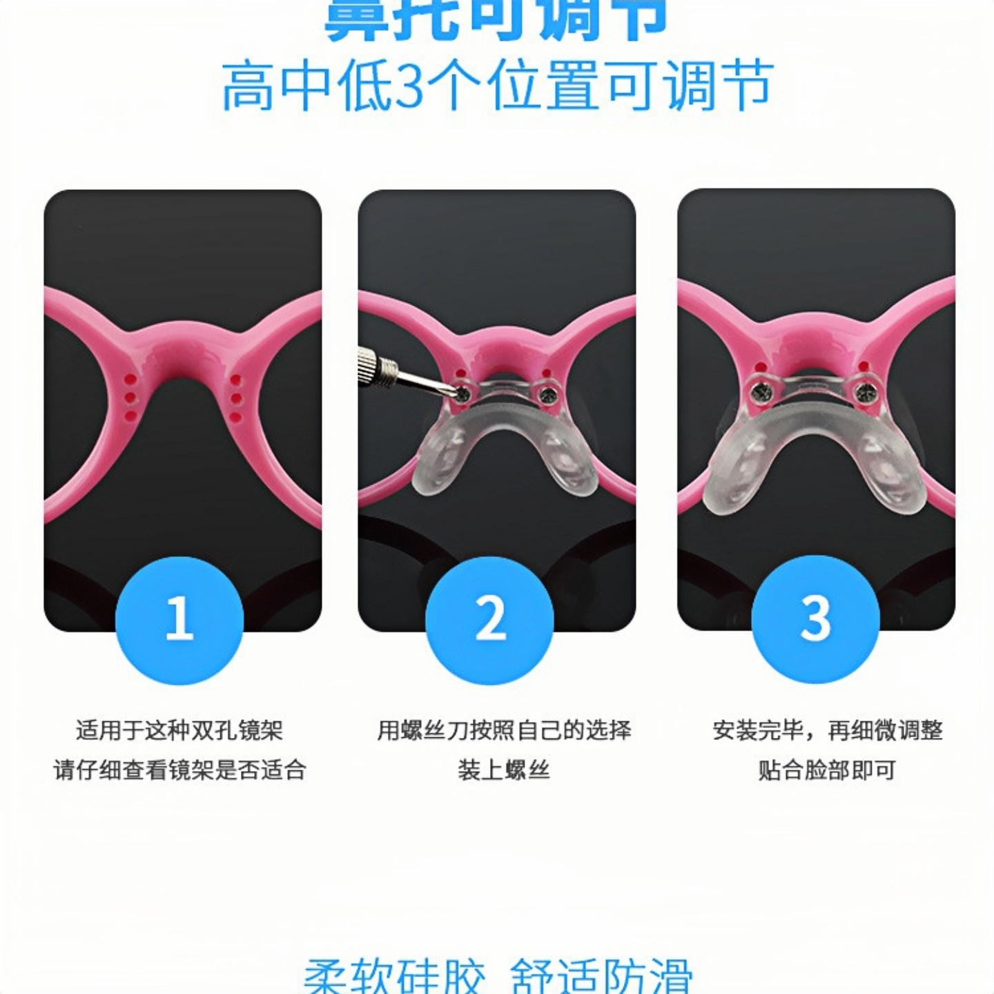 儿童眼镜鼻托软硅胶鼻梁马鞍螺丝式双孔连体鼻垫支架一体式配件