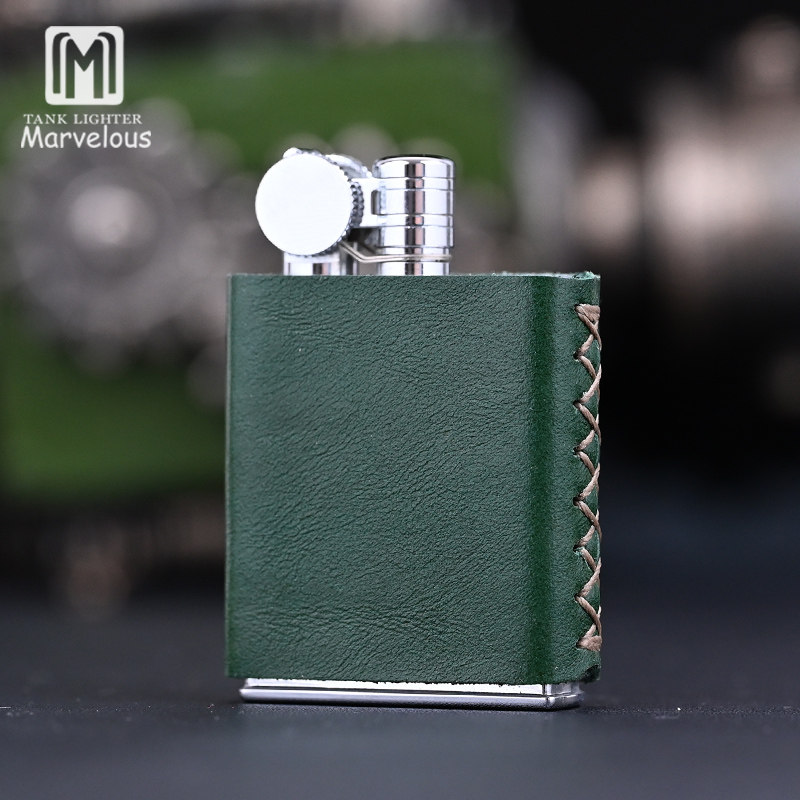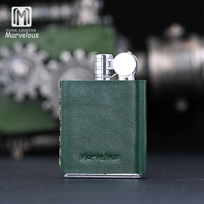 日本原装进口Marvelous/玛乐思砂轮煤油打火机怀旧绿真皮收藏烟具