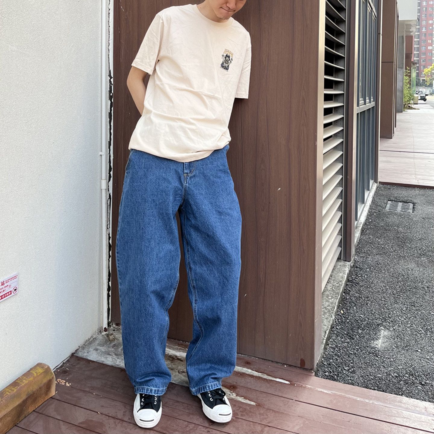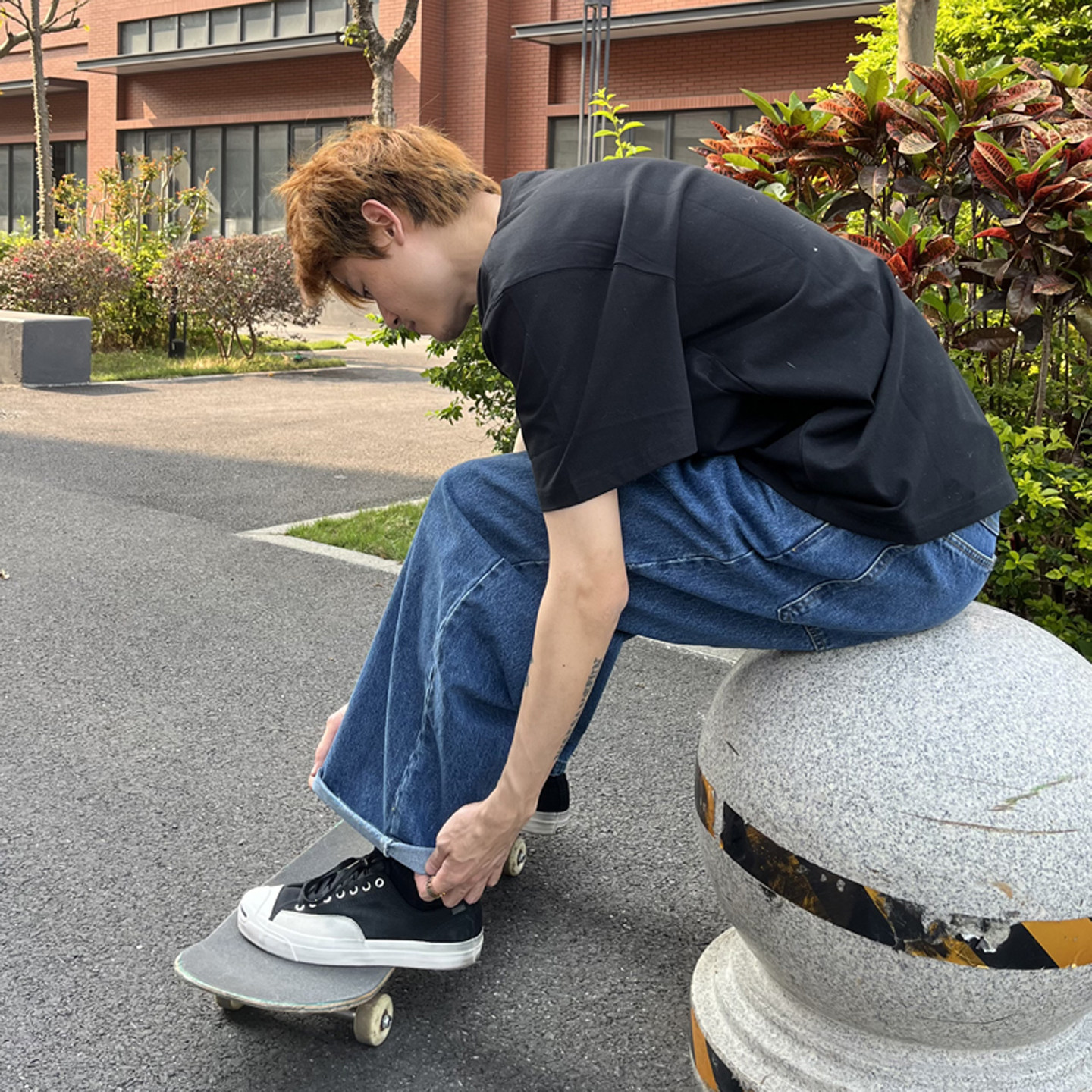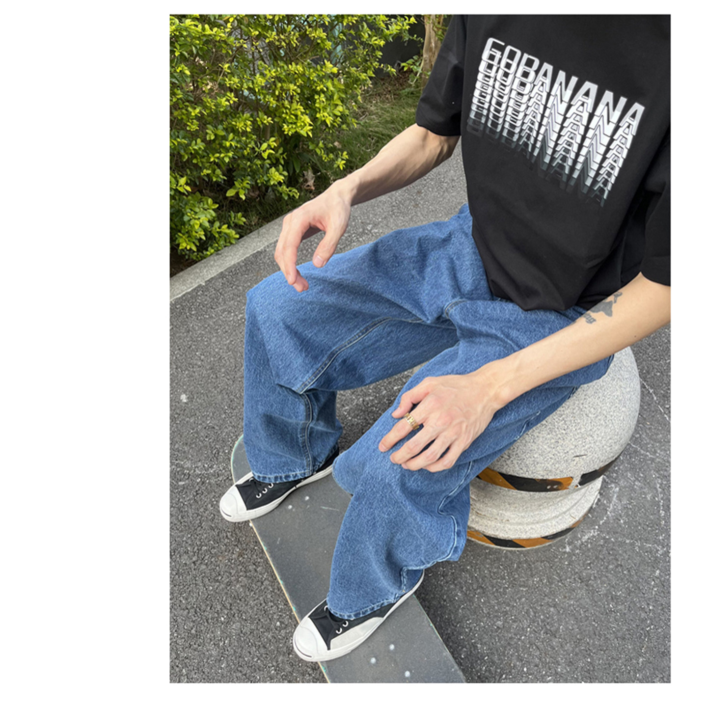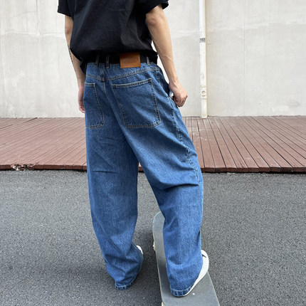 滑板宽松牛仔裤 水洗蓝色 情侣 美式街头 嘻哈街舞 BMX