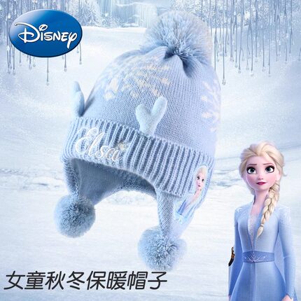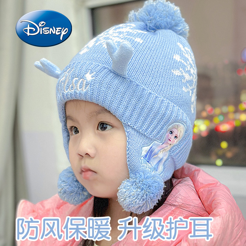 迪士尼儿童帽子秋冬女童针织帽爱莎艾莎公主女孩冬季围巾手套护耳
