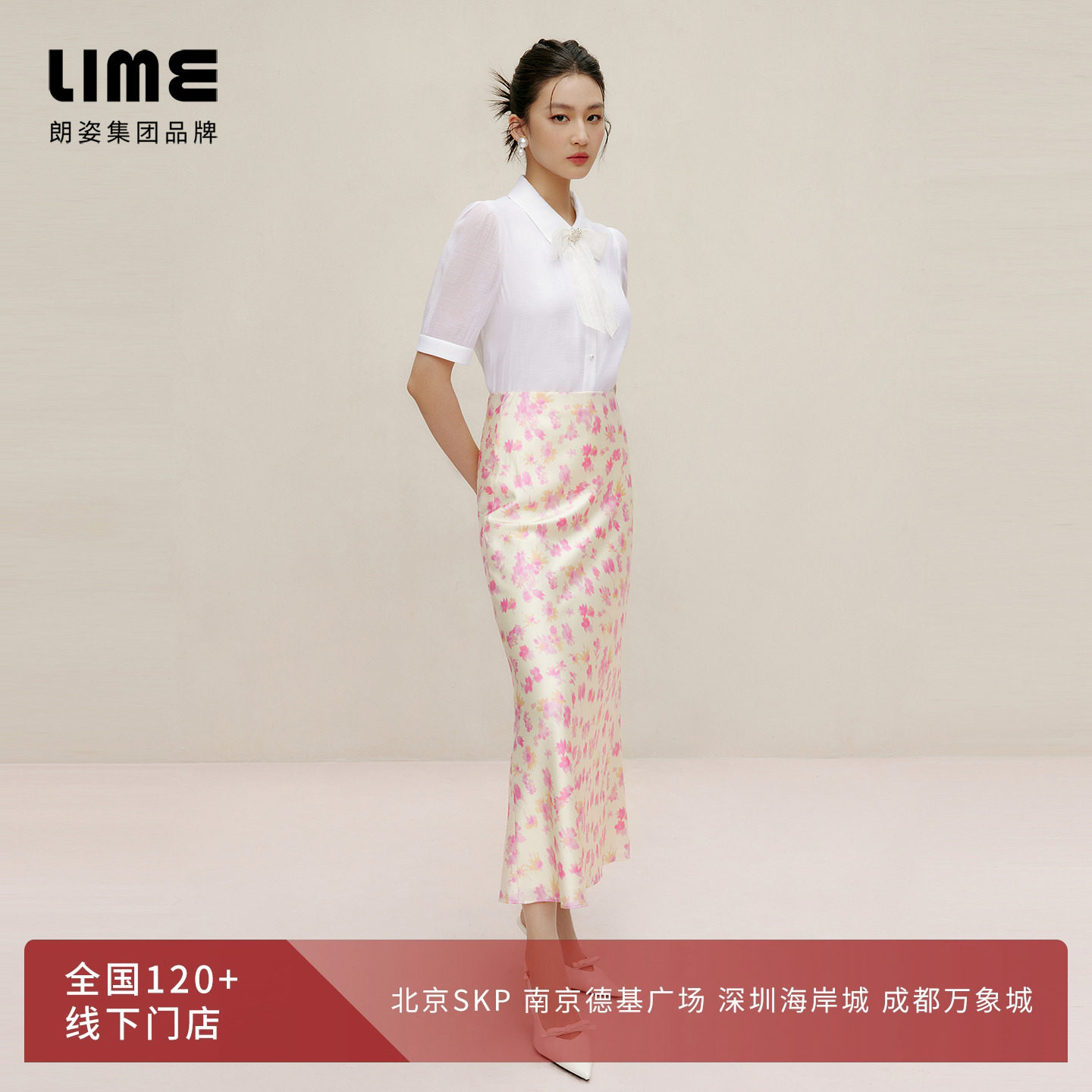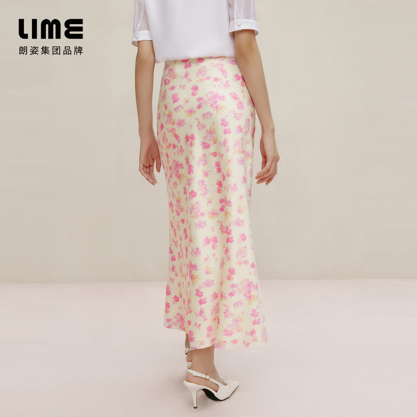 朗姿集团LIME莱茵高腰花卉印花半裙米黄色25夏季优雅飘逸鱼尾裙