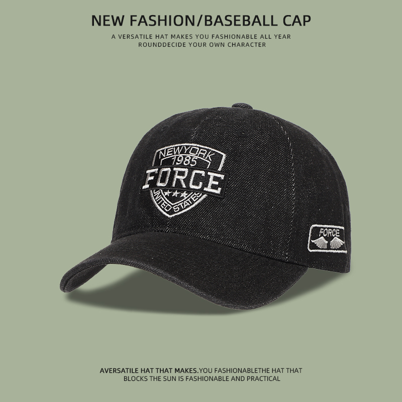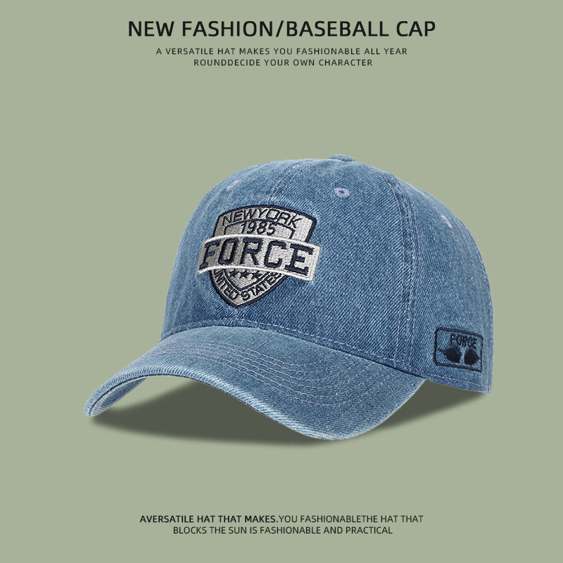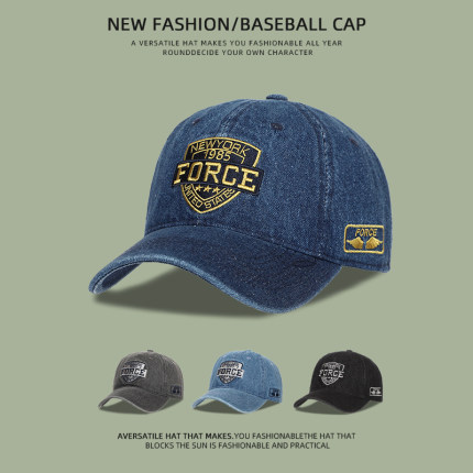 美式复古牛仔棒球帽子男士深顶大头围显脸小遮阳防晒刺绣鸭舌帽女