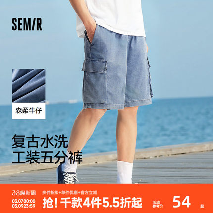 森柔牛仔|森马牛仔中裤男复古水洗工装短裤oversize夏季五分裤潮