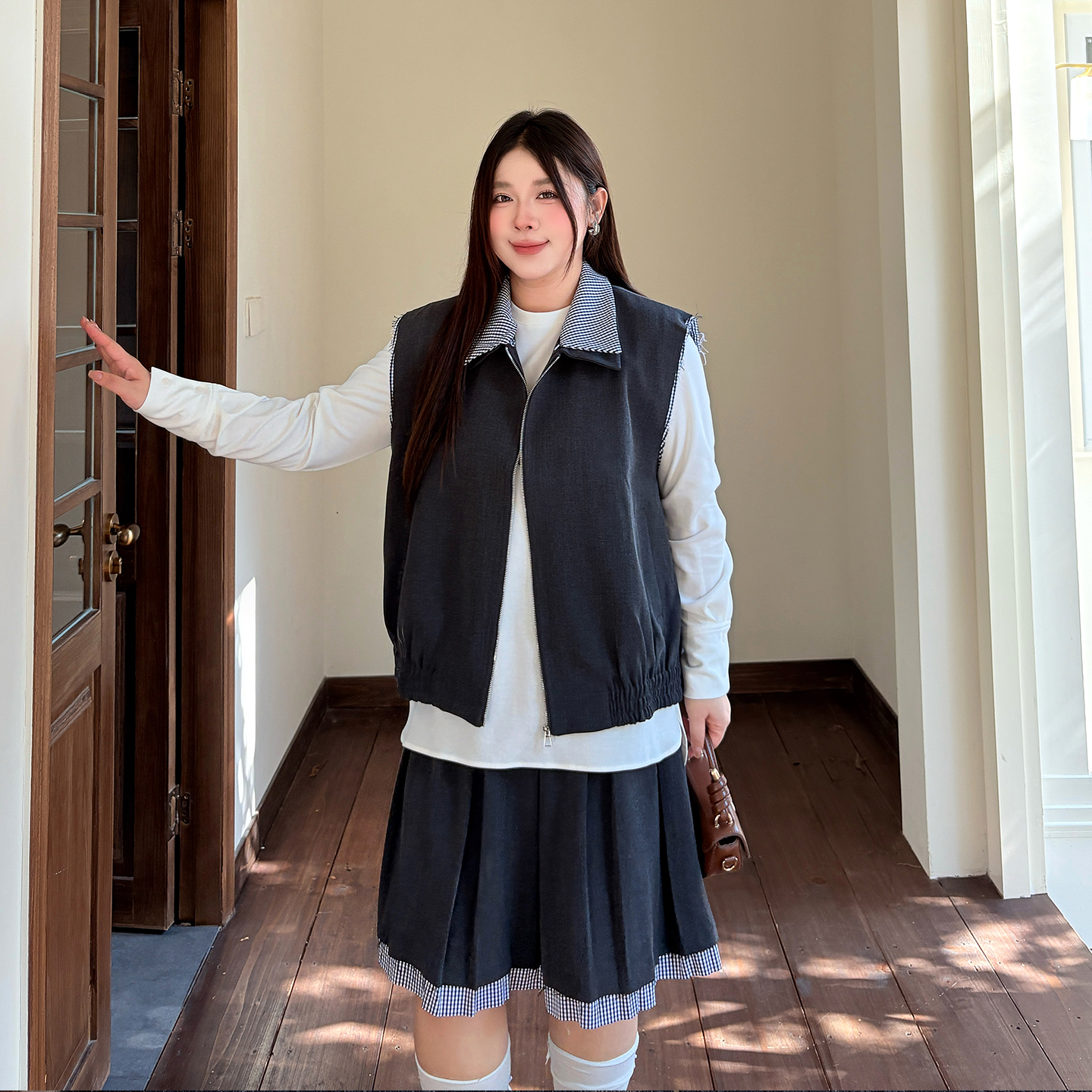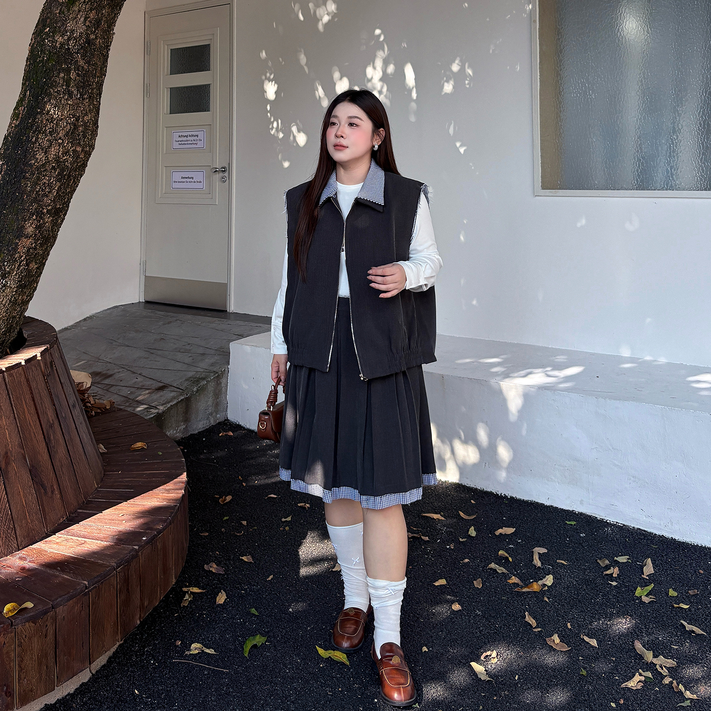 心存真大码女装马甲套装2025秋款200斤胖mm宽松减龄半身裙两件套